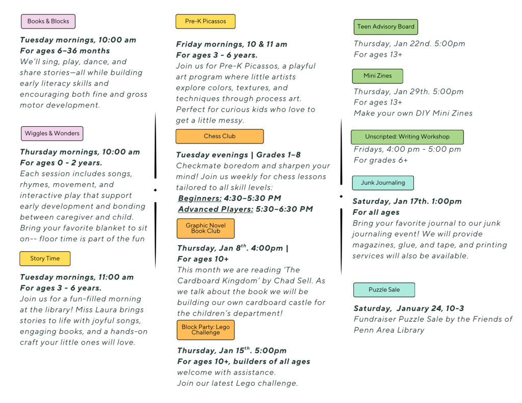 2001 Municipal Court, Harrison City, PA 15636 | 724-744-4414 | pennarealibrary2001@gmail.com